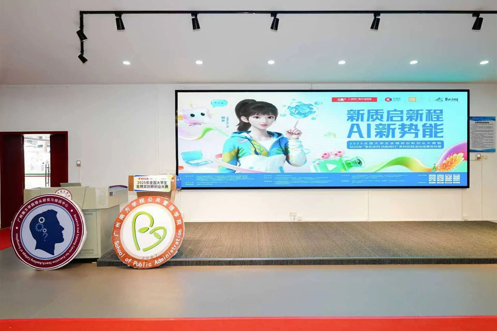 11月5号下午,2025年全国大学生金穗奖创新创业大赛暨“多彩乡村 向新而行”系列实践活动成果百校展宣讲会——广州南方学院站在粤空多功能厅隆重举行!此次活动以“新质启新程,AI新势能”为主题,聚焦青年创新力量与行业实践的深度融合,搭建高校与产业之间的高端对话平台。