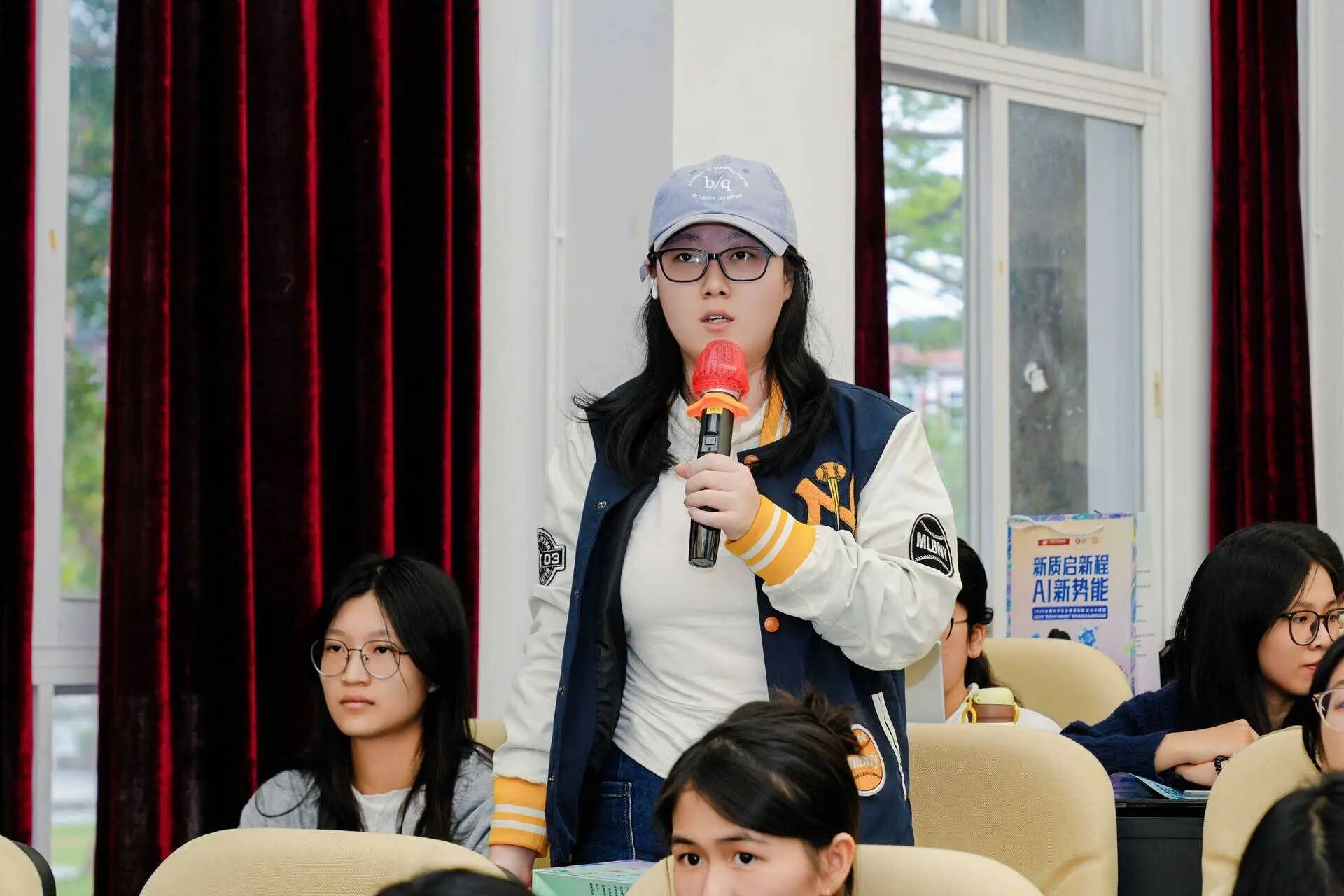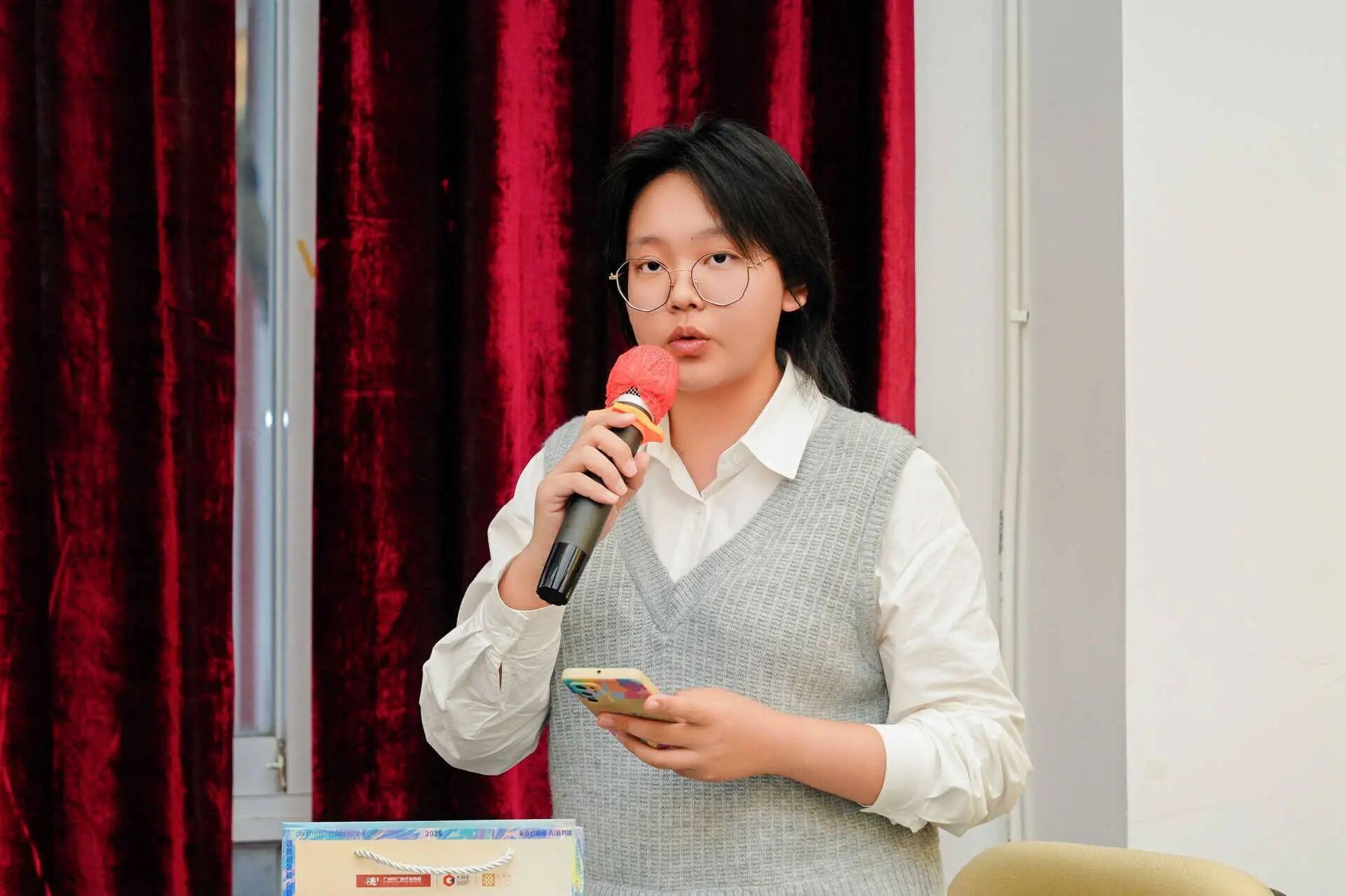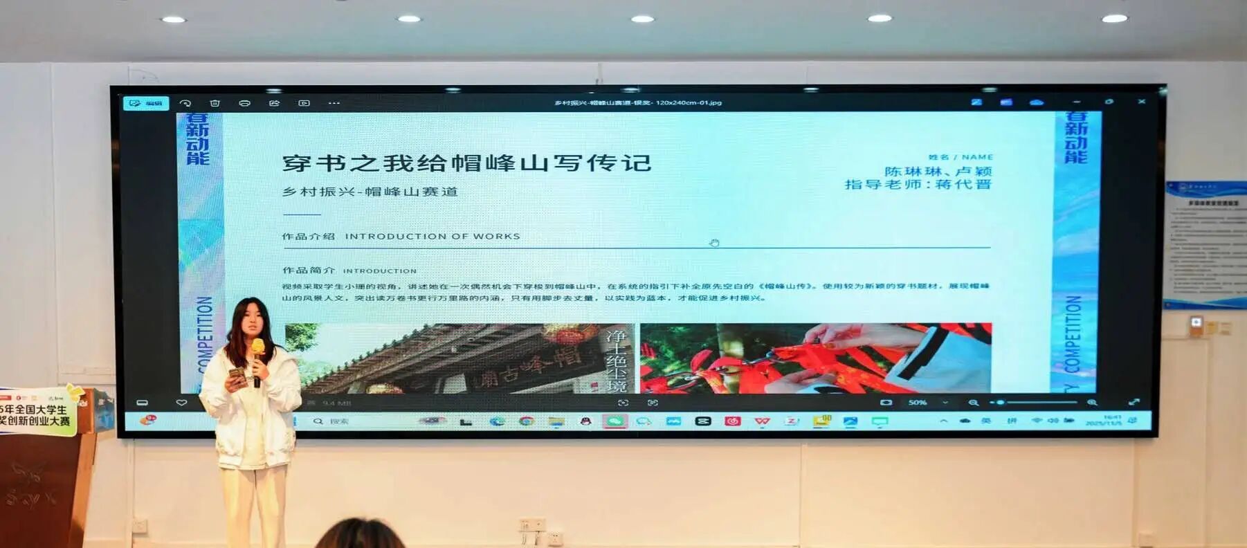 2022级公共关系学专业的陈琳琳同学分享了其2024年与2022级公共关系学专业卢颖同学参与乡村振兴赛道(帽峰山区域命题)获得银奖的经验。她强调,创意源于生活,鼓励同学们将专业知识、实践能力与创新思维相结合,创作出优秀作品。